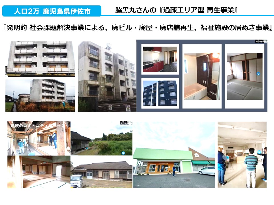 廃虚を再生する技術を確立することは、僕たちの一つのテーマでもあります。そして、そこに投資家を生み出せればサイクルが回り始めます。今、大牟田とか下関、伊佐で事例ができ始めました。ここに何かヒントがあるのではないかなと思います。
