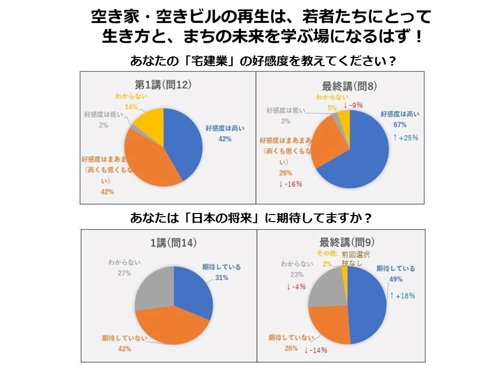 僕の講義で50人ぐらいの学生にアンケートをしました。不動産再生学を始める前は、「日本の将来そんなに期待してません」という子が多かったんです。14回の講義が終わったところでは、「日本の将来に期待している」子が結構増えました。