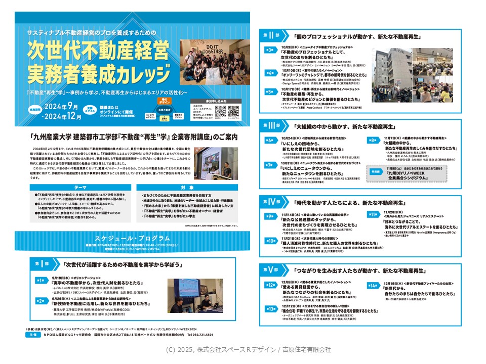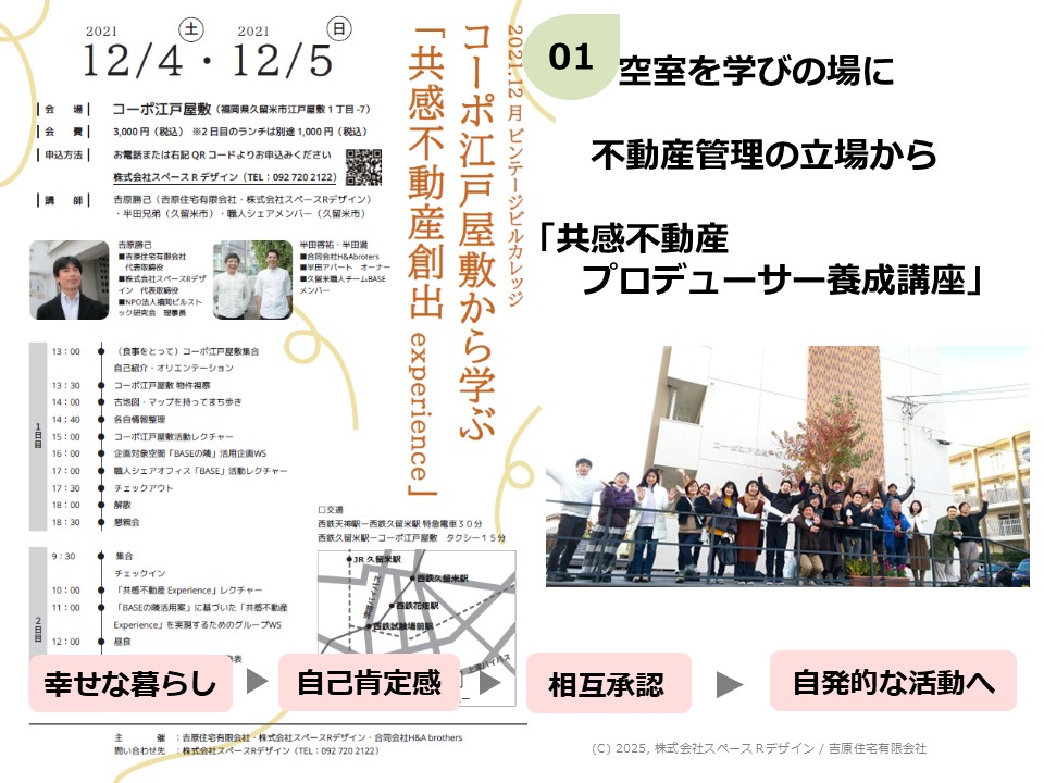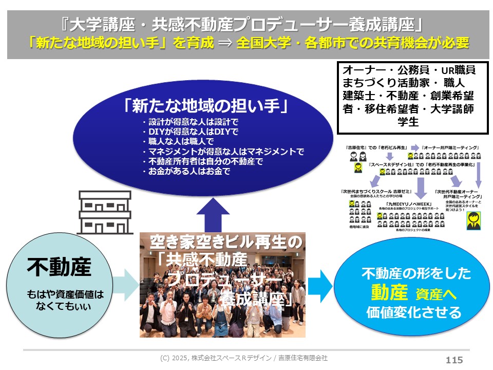 それもあり「次世代不動産経営実務者養成カレッジ」を実施し続けています。このような大学講座や、共感不動産を生み出す人たちへの講座は、全国的に必要だと思っております。