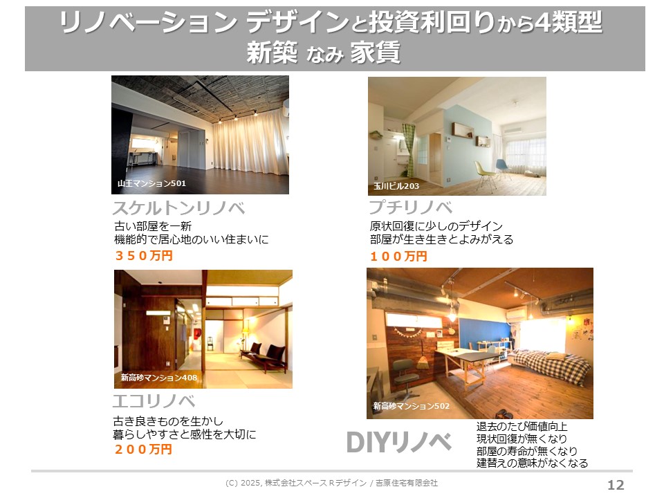 「プチリノベ」は、オーナーさんたちから相談を受けて開発に入った表層のリフォームです。ところが、デザインを入れることで、1万円ぐらいは家賃が上がる。このデザインと利回りの関係がすごく面白い。