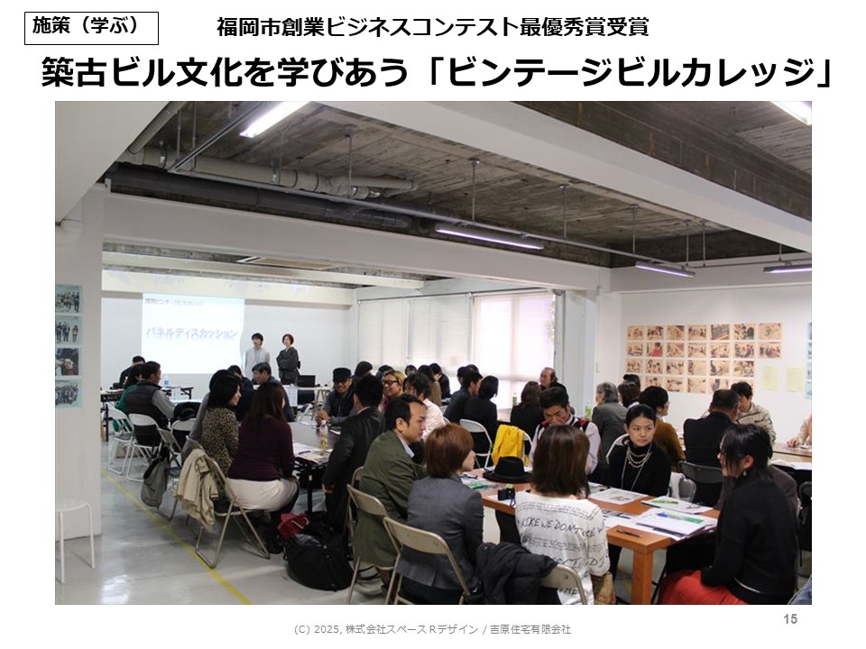 参加した人たちには、オーナーさんもおられます。自分の物件で動かしていこうという気持ちを生み出す場が、この「ビンテージビルカレッジ」なのかと思います。