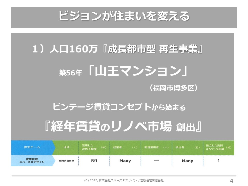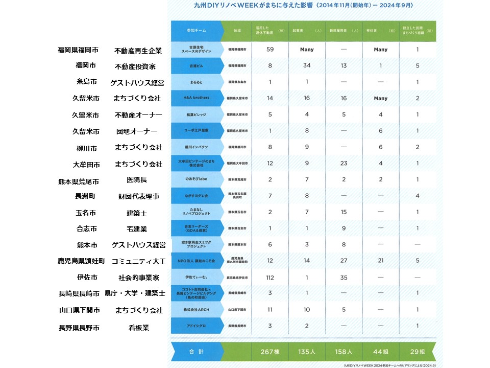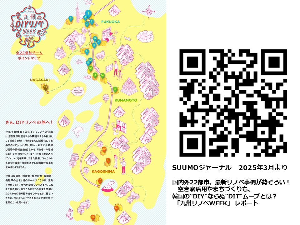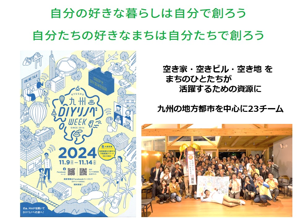 2014年からは「九州DIYリノベWEEK」を毎年企画。九州各地のDIYリノベをつなぐネットワークから多くの実践が生まれ、2024年に国土交通省「第2回地域価値を共創する不動産業アワード大賞」を受賞。