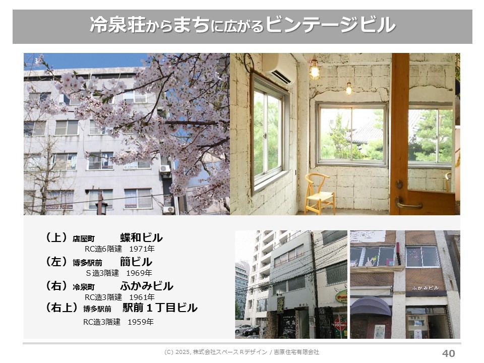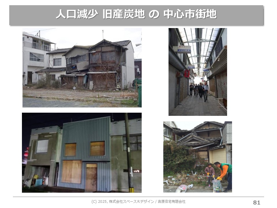 たとえばかつて栄えたまち、港町の下関とか石炭の大牟田には、すごい建物が建っているんです。人口が一気に減ると、そのまま凍結保存されているんです。昔から田舎のまちで、そんなに人口減っていないところは、そんなすごい建物はありません。ポテンシャルのある建物があまりないのです。